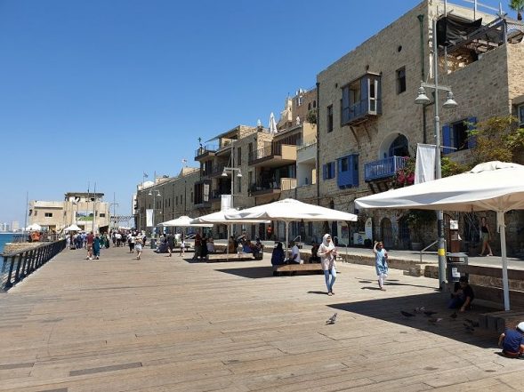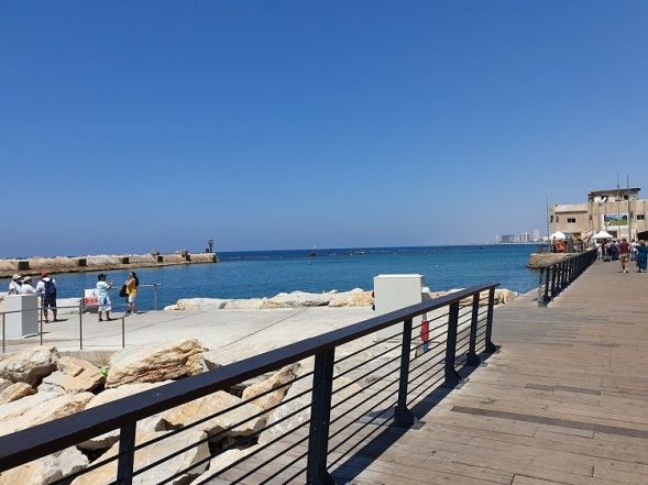 בנמל יפו עם חזית לרחוב ונוף לים,