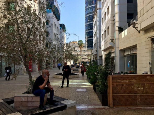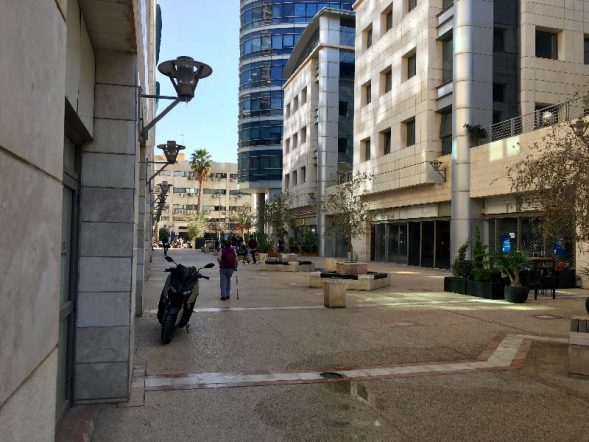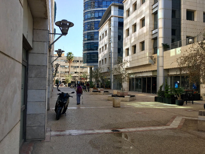 רחוב ראשי במתחם בסר עם תנועה רבה.