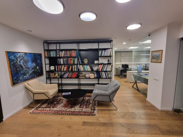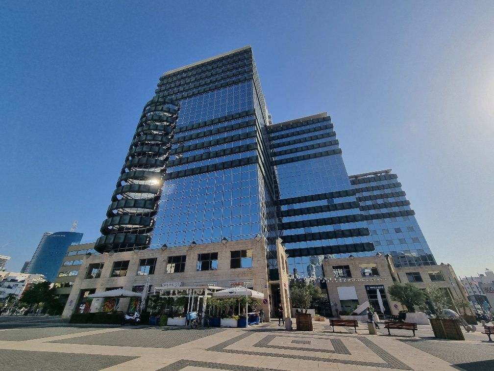 בבניין אמות ביטוח בתל אביב. ברחוב מנחם בגין.