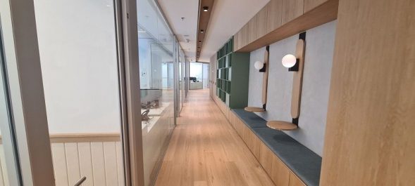 משרד בשטח כ – 160 מ"ר. בקומה גבוהה. מחולק ל 5 חדרים – בגמר גבוה.