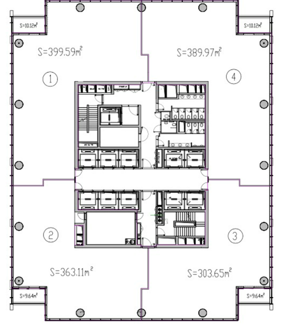 במגדל A, משרד 400 מ"ר. במעטפת. לכיוון מערב.