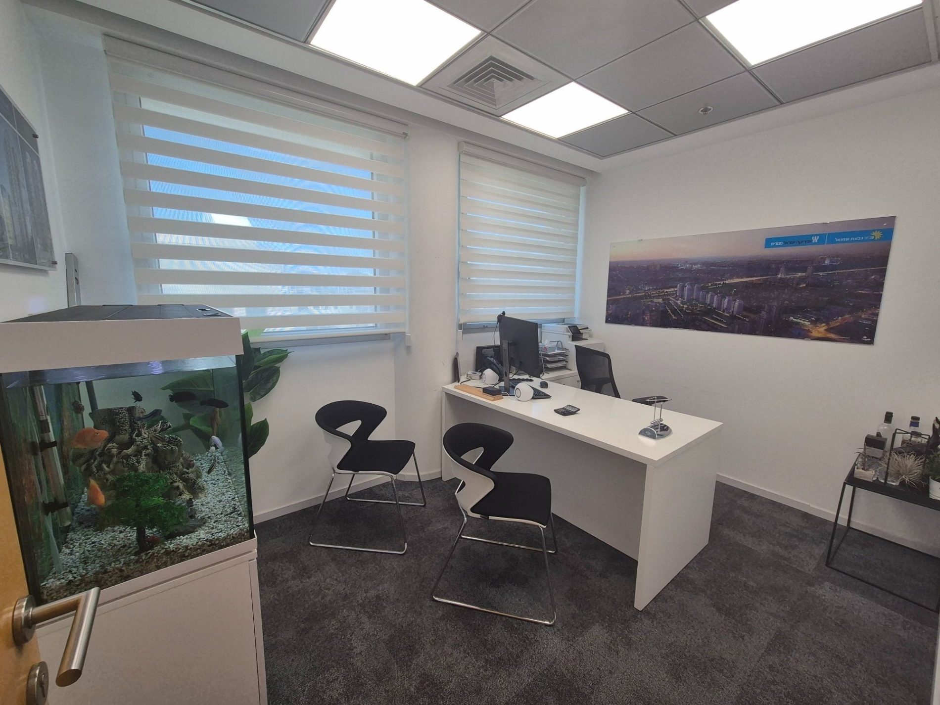 משרד ברמת גמר גבוהה, מחולק ברובו לחדרים, מטבח, 2 חדרי ישיבות, מקלחת ושרותים.