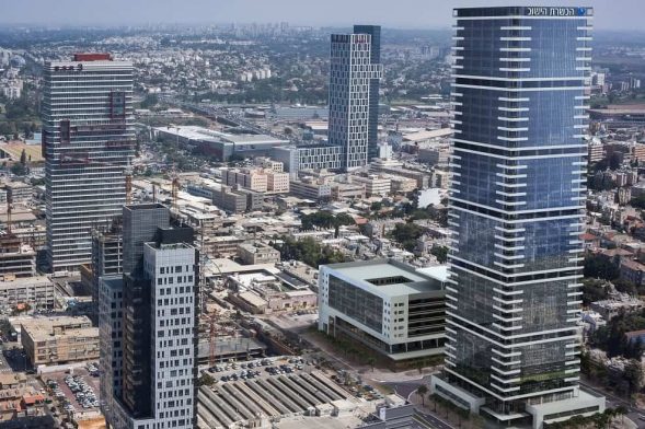 בניין גבוה עם מתחם מסחרי בקומת קרקע