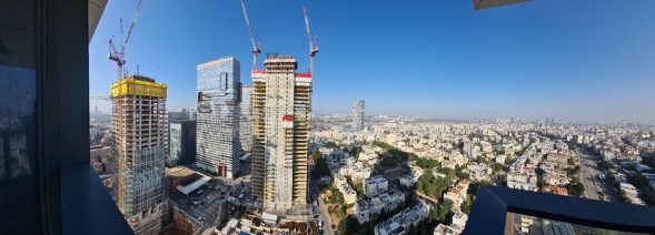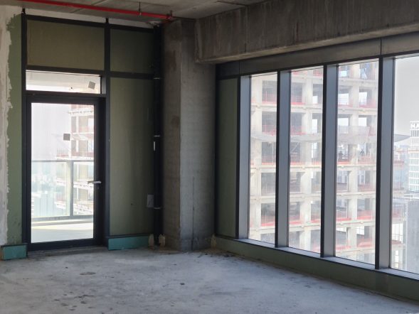 בבני ברק קומת משרדים עצמאית בבניין חדש וגבוה עם מתחם מסחרי בקומת קרקע.