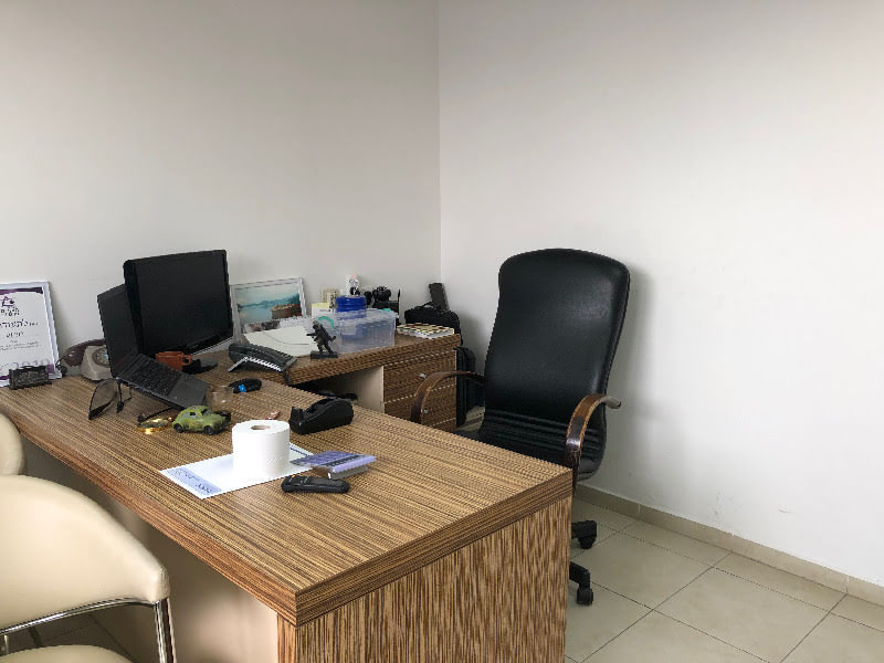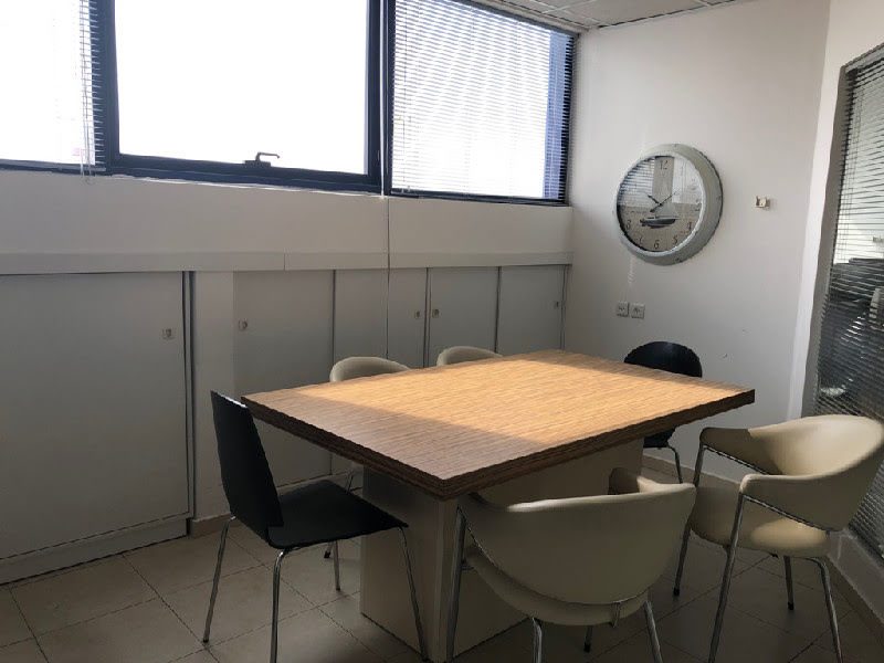 משרד בשטח של 120 מ"ר מחולק לעמדת קבלה, חדר מנכ"ל, חדר ישיבות ו-2 חדרי עבודה.